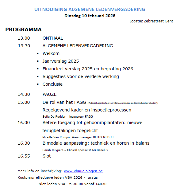 De Vlaamse Beroepsvereniging Audiologen (VBA) verdedigt en behartigt de belangen van audiologen en audiciens. Als onafhankelijke beroepsvereniging, erkend sinds 1994, zet de VBA zich in voor een sterke vertegenwoordiging van haar leden.